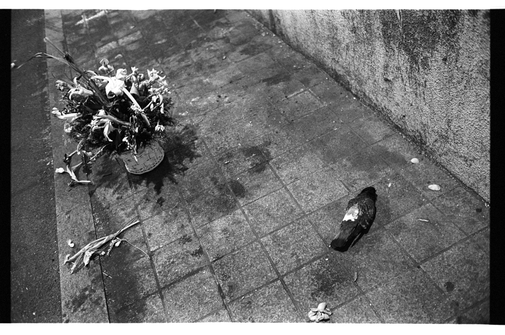 거리에 버려진 시든 화환과 비둘기의 죽음 #2
