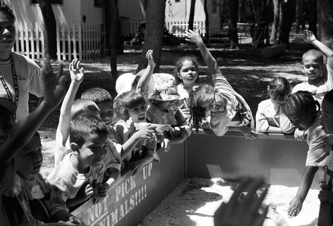 손을 위로, 아래로, 앞으로 든 아이들의 모습이 해맑아 보입니다.