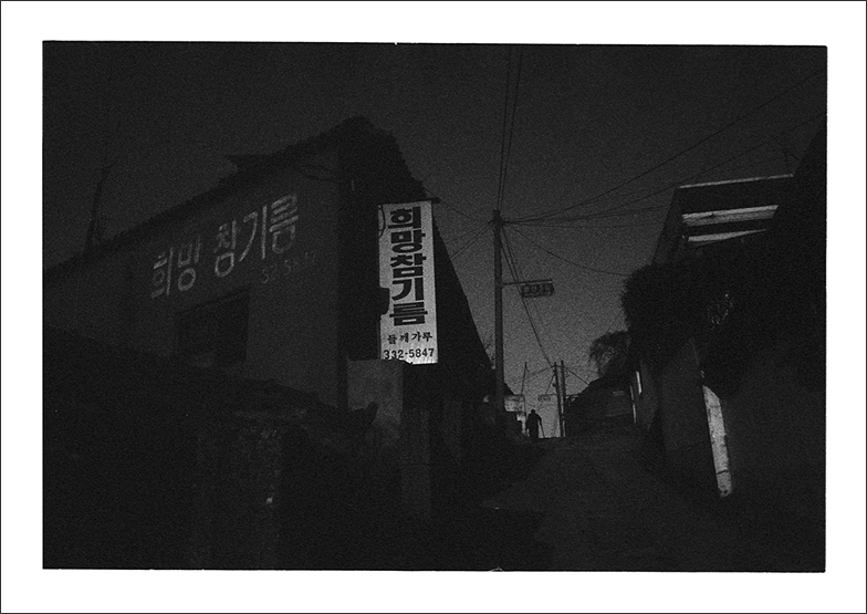 톤은 어둠지만 텍스트 하나와 긴 계단을 오르신 분의 실루엣으로