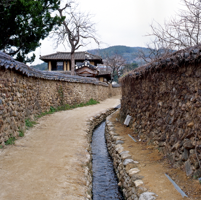 마을을 가로 질러 흐르는 도랑이 예전의 고향 마을을 연상케 합니다.