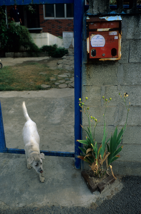 파란 대문, 빨간 우편함, 초록 풀... 그리고 흰 개.