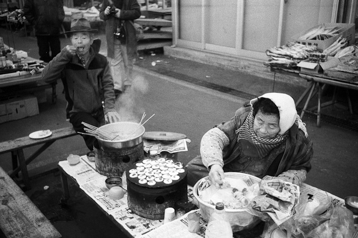 할아버지의 표정과 연신 풀빵을 구워내시는 할머니의 표정이 참 즐거운 추억을 떠오르게 합니다. 기분이 좋아지는 사진입니다.