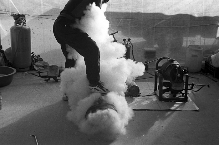 뻥튀기 아저씨의 모습이군요. 결정적인 장면을 잘 담으셨습니다. 입자감이 참 좋습니다.