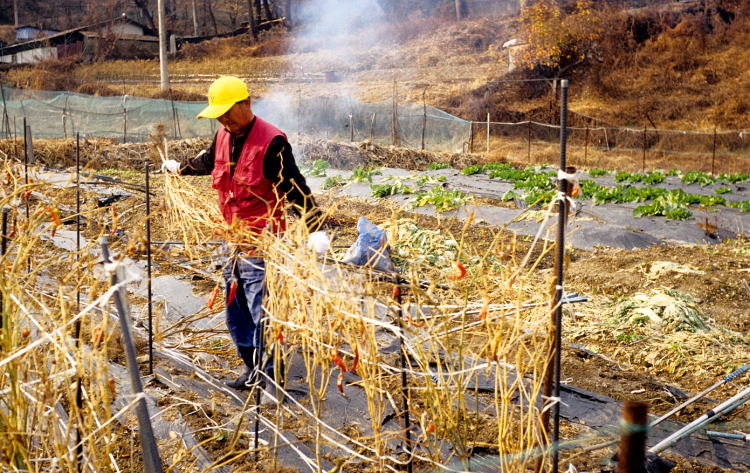 고추대를 뽑는 아저씨를 보니 예전의 선친의 모습이 생각납니다.