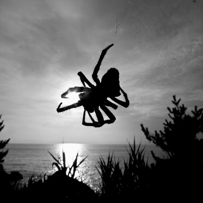 - 설명일출을 맞이하는 거미...