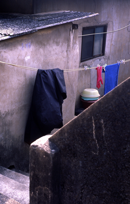 널려있는 우비와 파란 수건과 빨간 고무 장갑... 아마 봄맞이 대청소를 했나 봅니다. 깨끗한 느낌의 사진입니다.