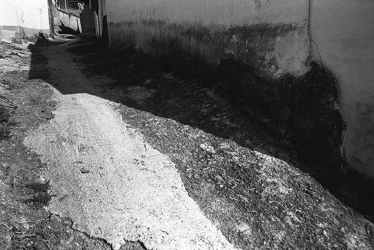 그림자와 벽의 얼룩, 그리고 치밀한 바닥이 한데 어울러져 아름답습니다. 저 위 골목 끝은 이것들이 그려진 캔버스가 말려 올라가는 듯합니다. 좋은 사진 감사합니다.