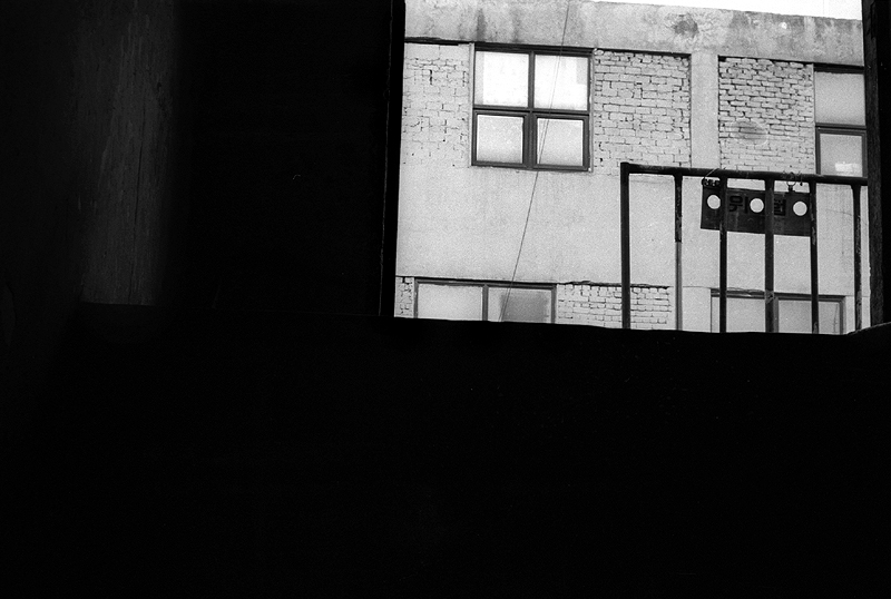 창을 통해서 본 공터의 공간과 다시 배경으로서의 창들...