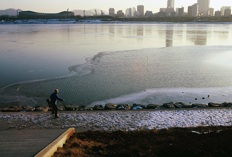 아무리 추워도 물수제비하는 동심은 막을 수 없는 겁니다