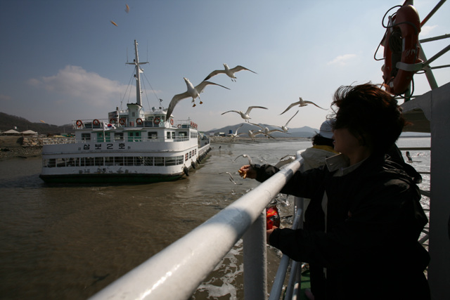 - 설명외포리에서 배를 타면 갈매기가 따라 옵니다.