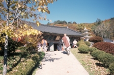 기도를 마치고 돌아가는 불자