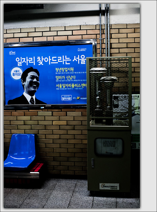의자와 광고판이 파란색이라 얼핏보기만 했는데도 눈에 확들어와 버렸습니다.