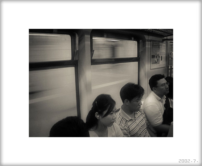 속도감을 배경으로 깔고 앉은 무표정한 인물들... 세상은 파노라마처럼 변해가는데 우리 모두 느끼지