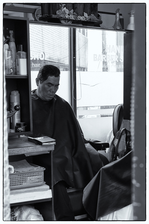 염색을 하신 채 잠시 졸고 계신 중년의 남성... 머리가 세도록 살아 오신 날들, 그 시간 속에 바쳐진 안간힘의 흔적들이