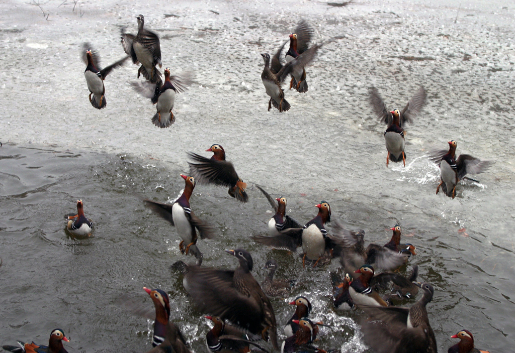 - 설명원앙이 뛰어오른는 모습이 날불렀소하는듯....
