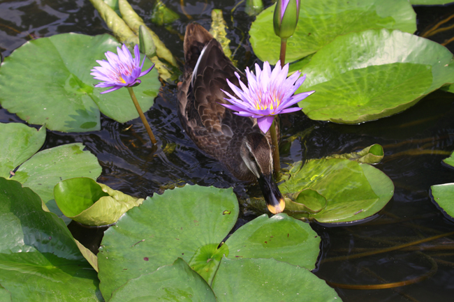 - 설명폭염에 오리도 꽃그늘을 찾아...