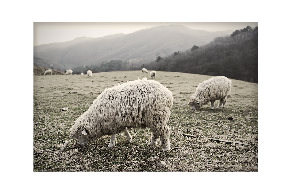거기서 겨울을 준비하는 양들을 찍어 봅니다.