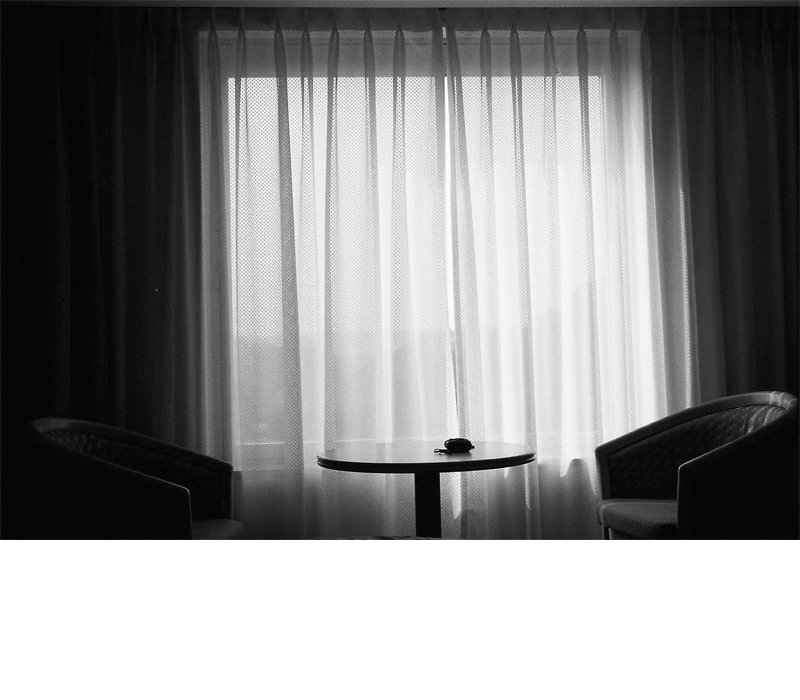 커튼을 투과해서 들어오는 햇살이 의자를 비추는 풍경에
