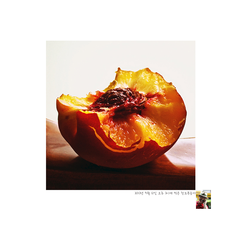 드시던 복숭아를 마저다 드실 일이지 맛좋은 복숭아가 무슨 죄가 있다고 적나라하게 내장이 보이는 것을 기념샷이라니 너무 잔인하십니다그려..... 무더운 한국의 여름은 자알 지내고 계시는지. |