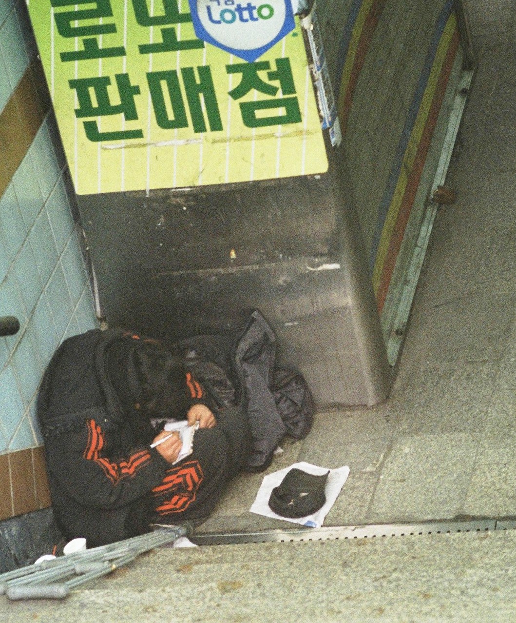 - 설명새벽녘 날씨도 쌀쌀한데, 지하계단에서 열심히 공부하시는 노숙자의 모습이 이색적이어서 한컷을.............