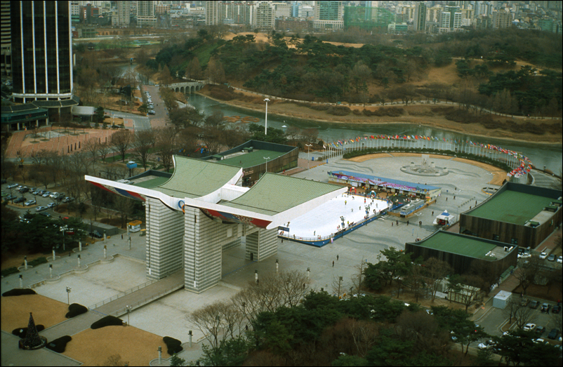 올림픽공원 대각선 건너편 한미약품 건물 맨 꼭대기에서 찍었습니다. ^^