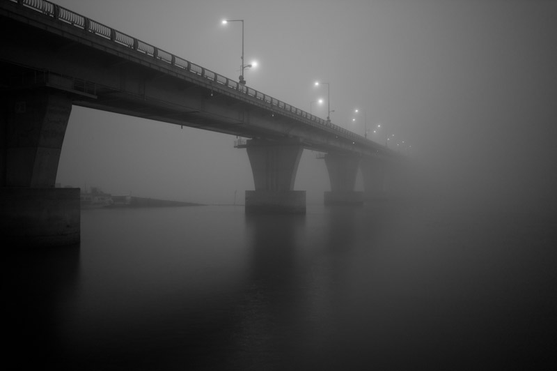 안개 속으로 사라지는 다리 끝에서 시선이 한참 멈춥니다.