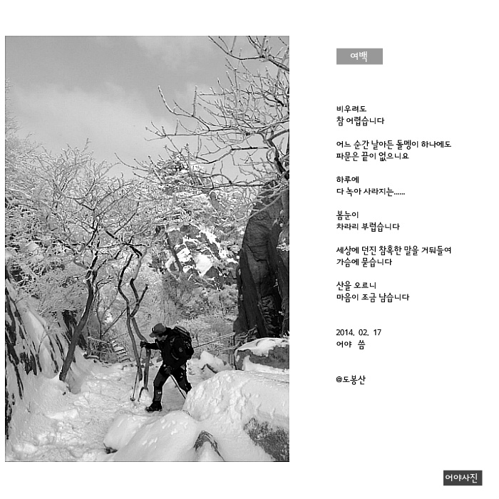 설중 산행 참 마음을 상쾌하게 하는데 , 코끗이 쨍해지는 느낌의 작품 입니다. 감사 !
