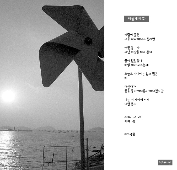 지금 여기에 서 있는 바람개비는 "슬픈 바람개비"로 보입니다....(글 때문일까요?)