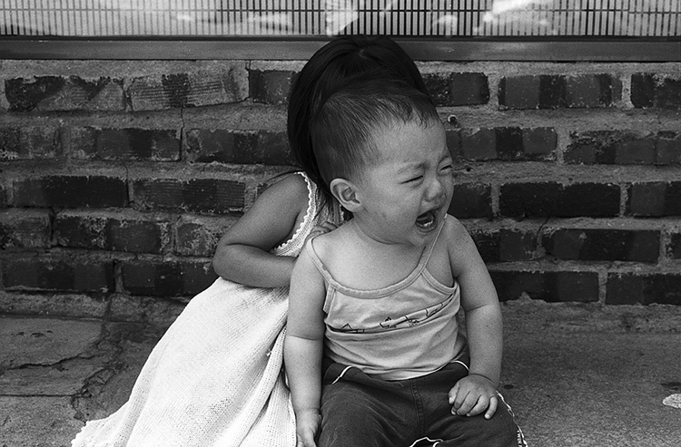 누나는 남동생 뒤로 숨더군요!