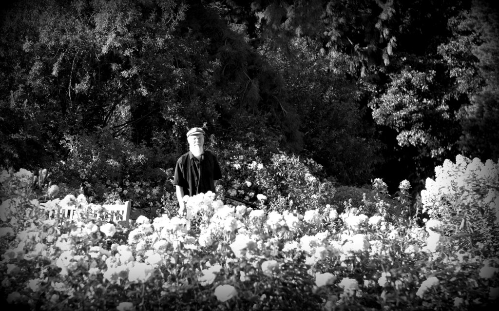 꽃밭과 노인,,