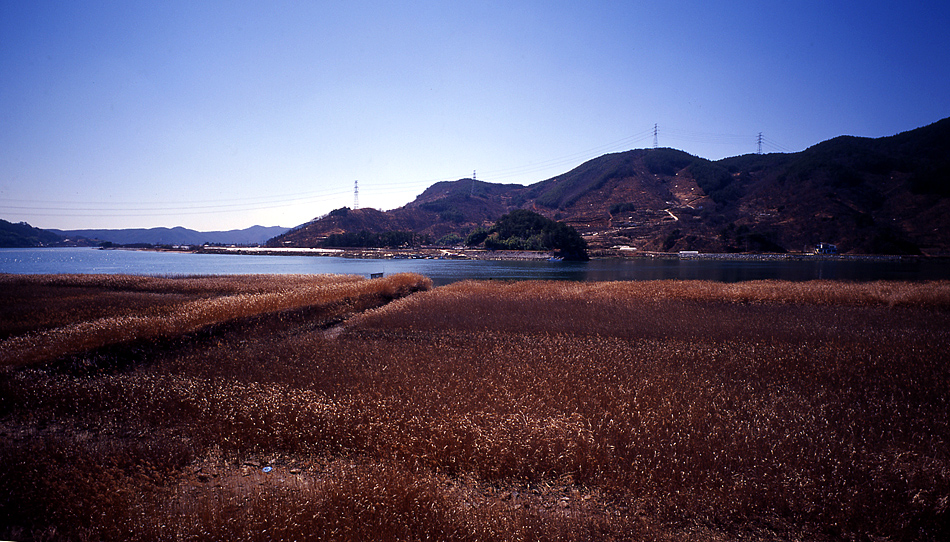 - 설명하동에서 남해로 진입하기전 섬진강 하류의 억새밭.