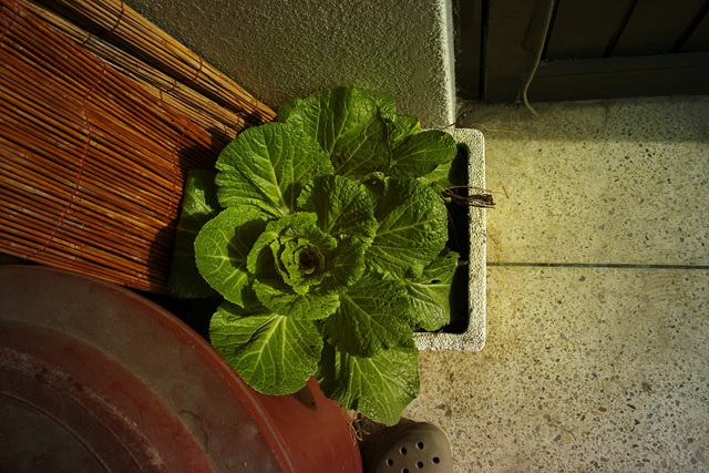- 설명화분에 배추가 그것도 계단구석에