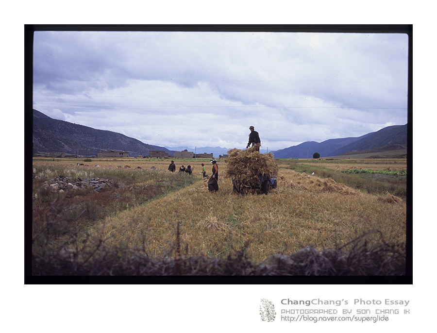 여기서 내가 경주에서 보리단 묶는 방법을 시범보여주었다.(일명 "경주식 농법" ) ㅋ -2009년 가을, 동티벳여행길에서-