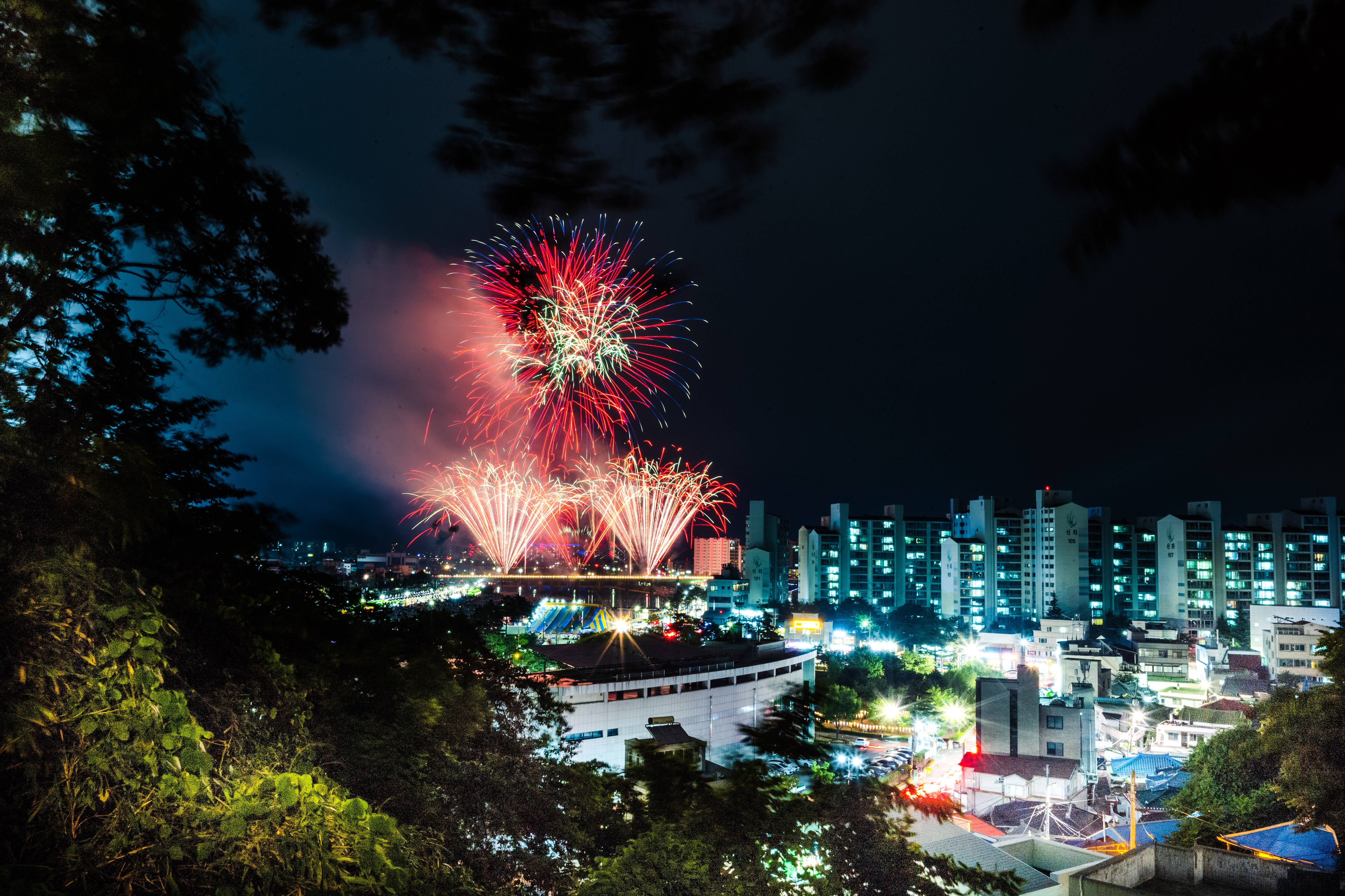 - 설명개막땐 저 불꽃놀이 한창인 단오장 안에서 술잔을 기울이며 봤더랬지. 오늘은 하는지도 모르고 바보상자에 정신줄 놓고 있었다.