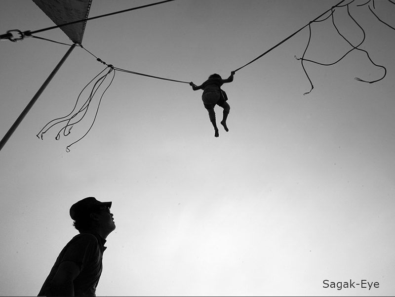 줄을 놓치면 허공에서 대롱 대롱 매달려 있게끔 안전장치가