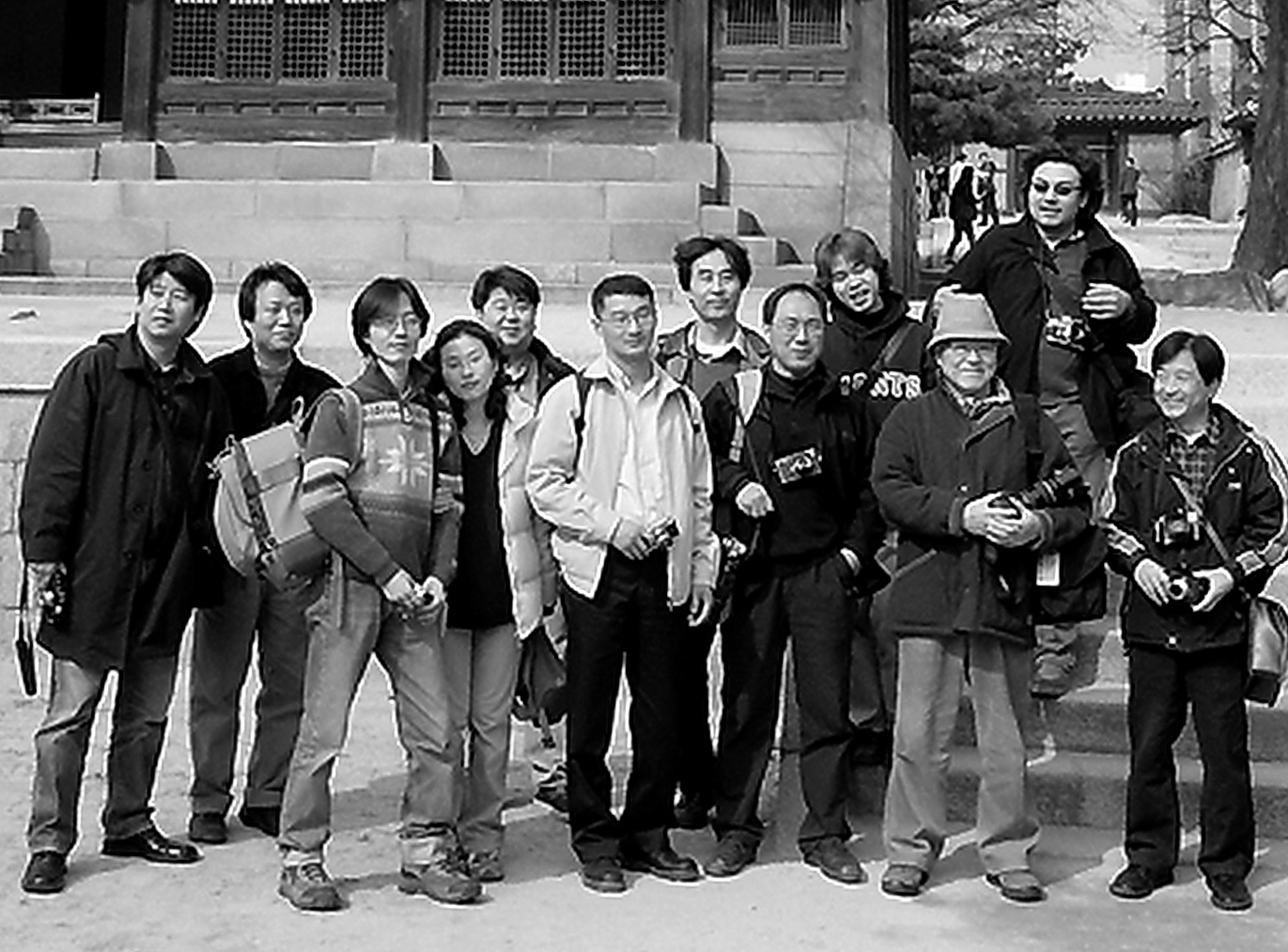 앞줄 오른쪽 두번째 모자쓰고 카메라 안고 있는 인물입니다...그때도 이미 년장자였어요...금년에 85세니까 그때는 좋은 나이였지요.....