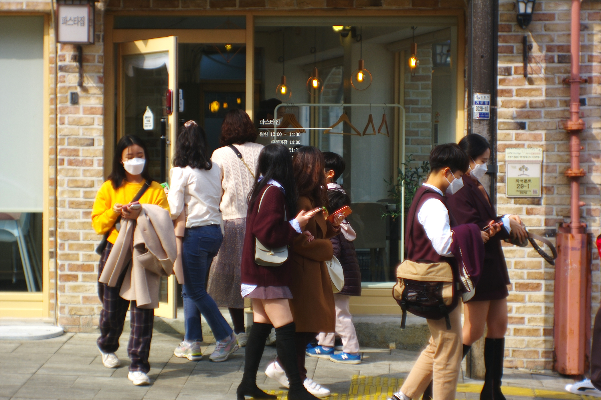 카페 앞에서 줄을 서서 기다린답니다