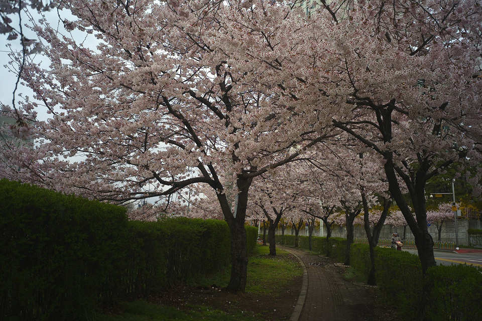 - 설명벚나무 사이로 누군가가 지나길 기다렸건만 스산한 날씨에 오가는이 없고