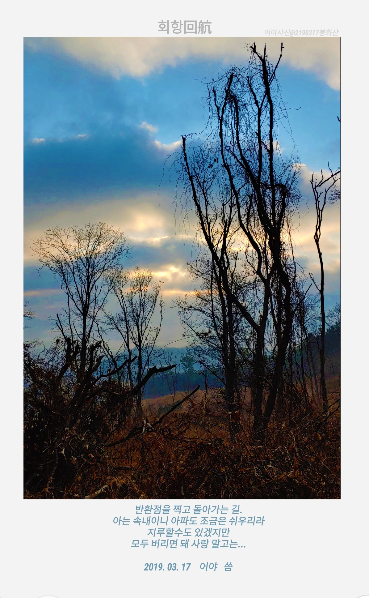반환점을 찍고 돌아가는 길.