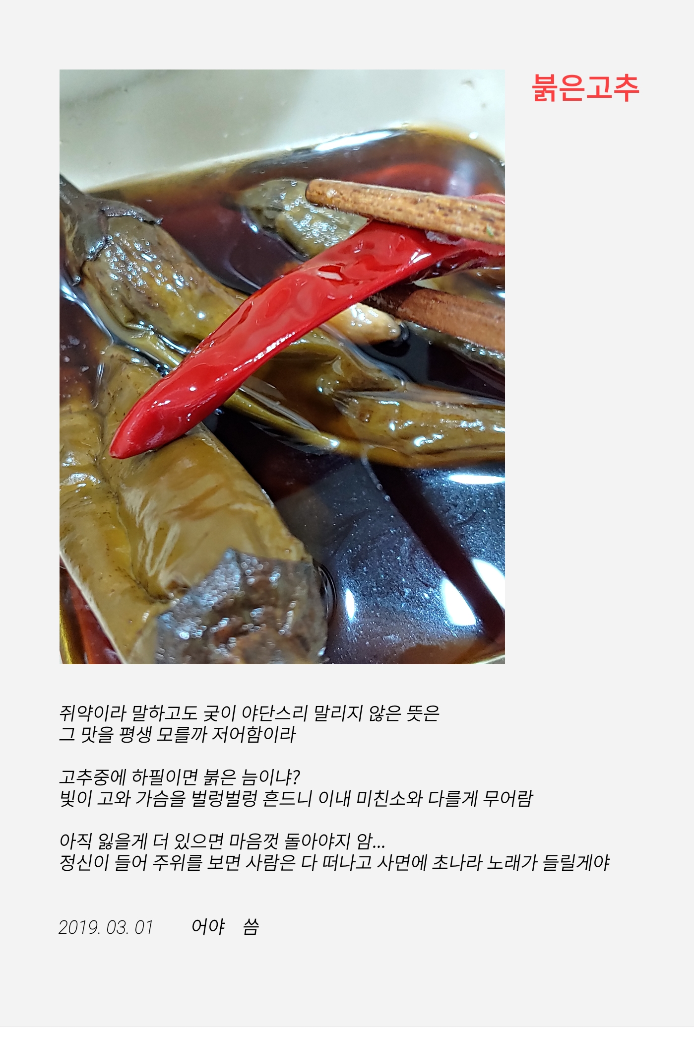 그 맛을 평생 모를까 저어함이라