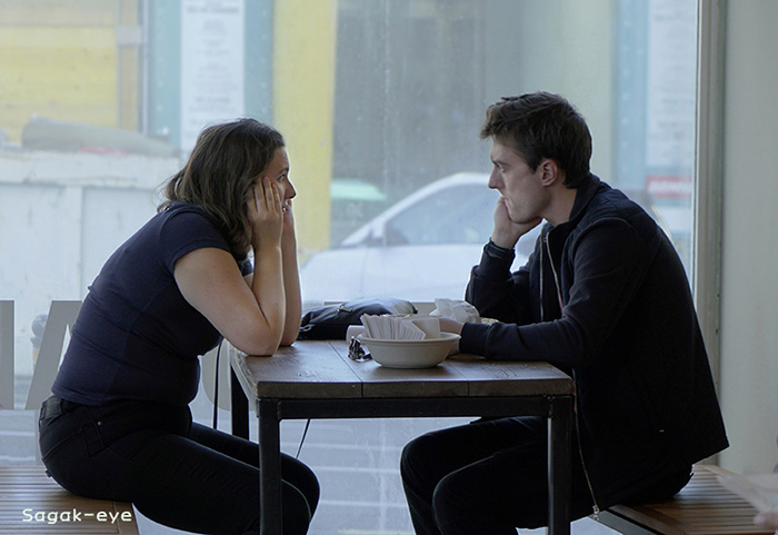 여성은 빨리 결정하라고 재촉하는듯 무슨말이 나오는지 기다리는 장면입니다 시선이 오른쪽이면 생각할때 여성의 눈썹과 시선이 올라갔으니 기대하는중 |