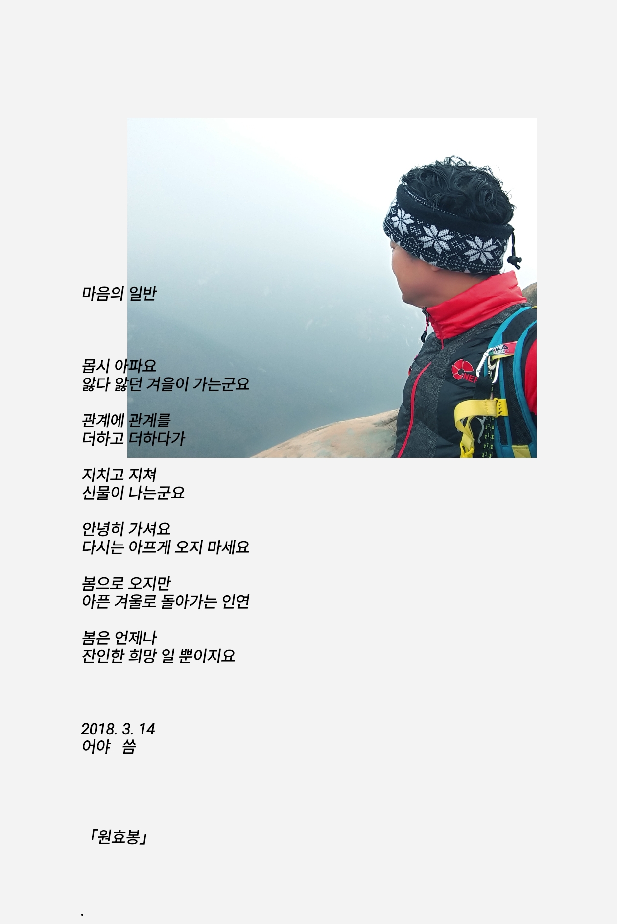 앓다 앓던 겨을이 가는군요