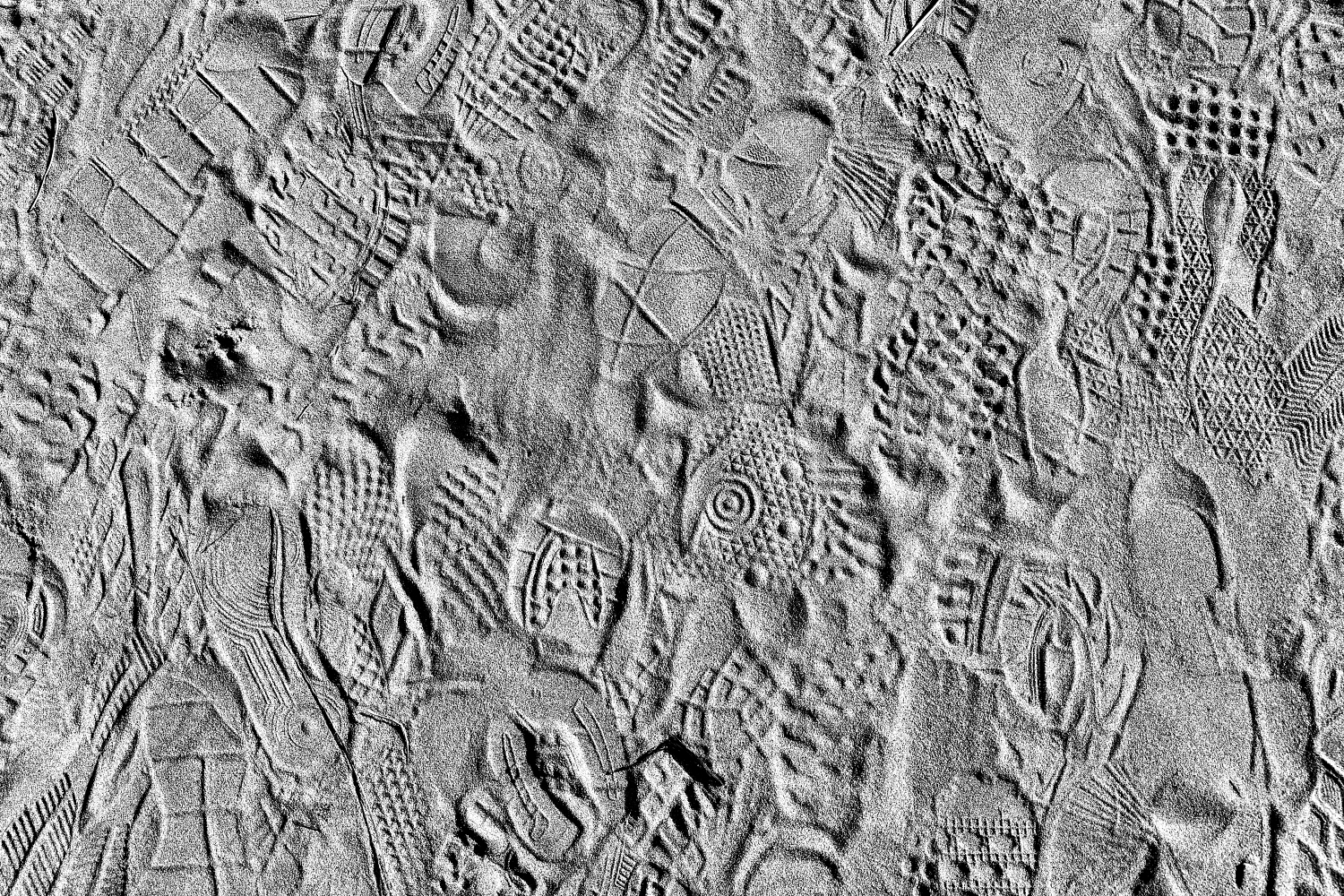 - 설명모래사장 위의 각양의 발자국