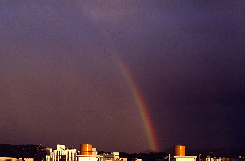 마치 무지개가 아래의 건축물들속에서 태어난듯 도합니다.