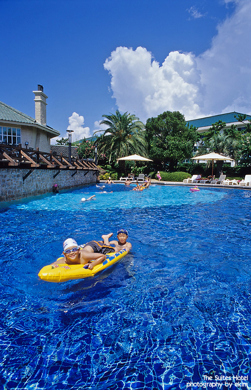 - 설명구름이 뭉게 뭉게 피어나는 파란 하늘과 파란 풀장~