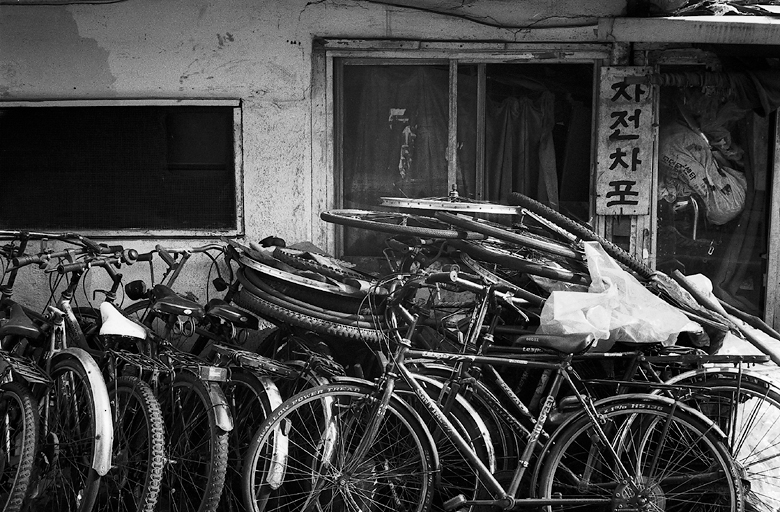 '자전차포'라는 간판과 아무렇게나 쌓아진 고물 자전거, 참 오랫만에 보는 정경입니다.^^