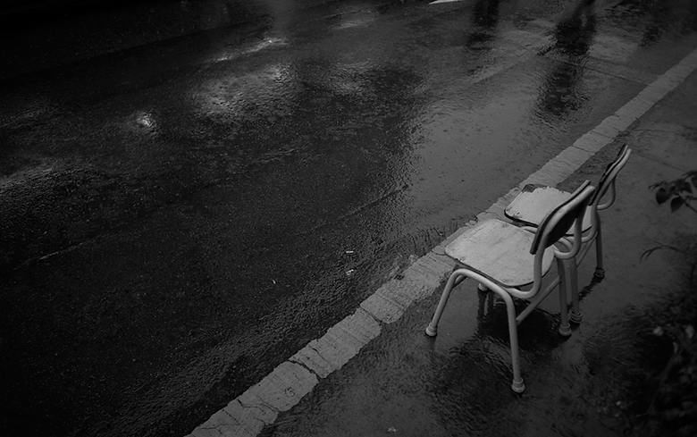 비를 맞으며 그곳에 있는 의자가 하나가 아니라 둘이라서 다행입니다. 하나만 있었으면 정말 많이 외로울것 같아요..