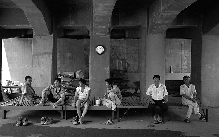 특징없은 모습들이 중앙에 위치한 시계에의해