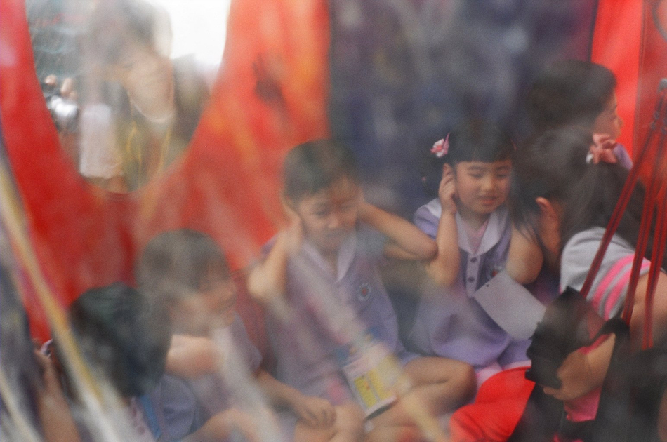 텐트안도 아니고 어디 놀이시설인가요?애들 표정이 재미있습니다.