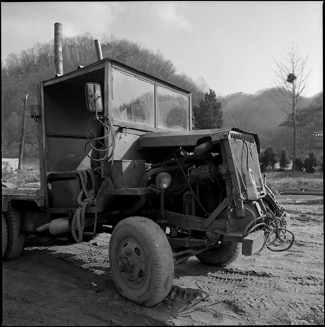 산판에서 통나무를 실어나르는 힘센 도락구...